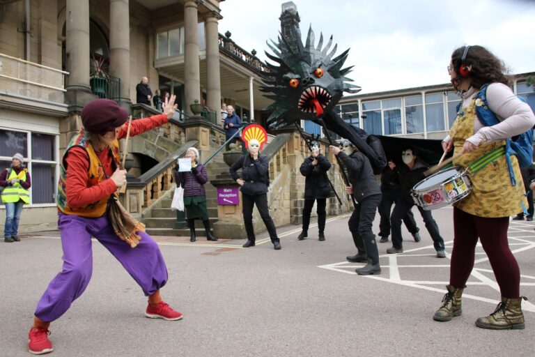 Campaigners including an Extinction Rebellion Samba band previously took part in a demonstration with a giant ‘oil monster’ and ‘oil barons’ performing an oil-themed Jabberwocky, in Matlock, in March, last year as part of a National Day of Divestment against council pension funds being invested in fossil fuels.