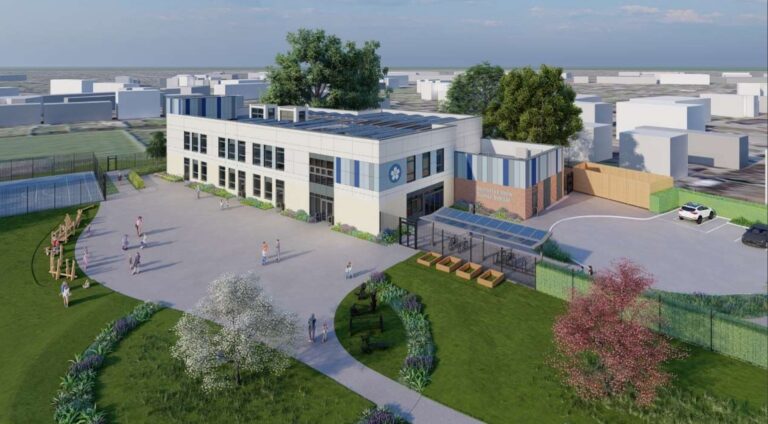 Plans submitted with the scheme show the building would be covered in grey metal cladding with elements of exposed red brick, with the school to cover 976 square metres.